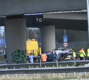 Een rijstrook van de weg werd tijdelijk afgezet. De politie leidde het verkeer langs de plek van het ongeval.