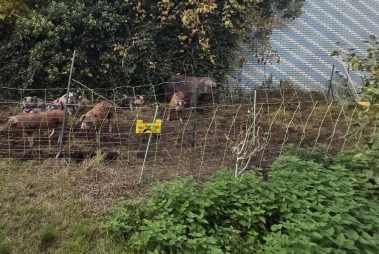 Doordat de biggen niet alleen de planten opeten, maar ook de grond loswoelen en de wortels uit de grond trekken om op te eten, raakt de Japanse Duizendknoop na verloop van tijd uitgeput en sterft uiteindelijk af. “De locatie op The Field is goed geschikt. Het is een afgesloten terrein. Begin dit jaar is de omheining van het terrein verhoogd en verbeterd om te voorkomen dat het terrein in de nacht wordt betreden. En het gebiedje waar de JDK groeit, tegen de spoordijk, is met een dubbel hek afgezet om te voorkomen dat de biggen uitbreken.