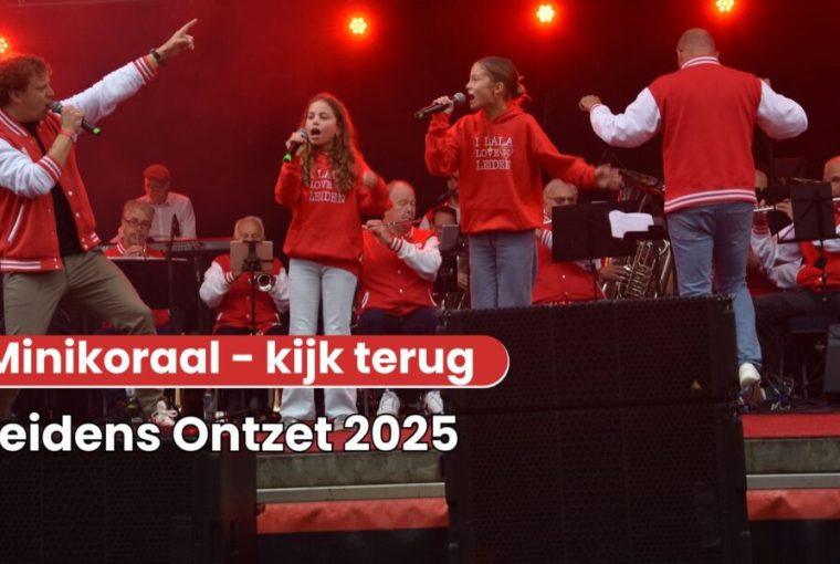 In een prettig herfstzonnetje genoten ruim drieduizend basisscholieren dinsdagmiddag op het Garenmarktplein van het Minikoraal. Het enthousiaste publiek zong uit volle borst de liedjes over de geschiedenis van het Leidens Ontzet mee.