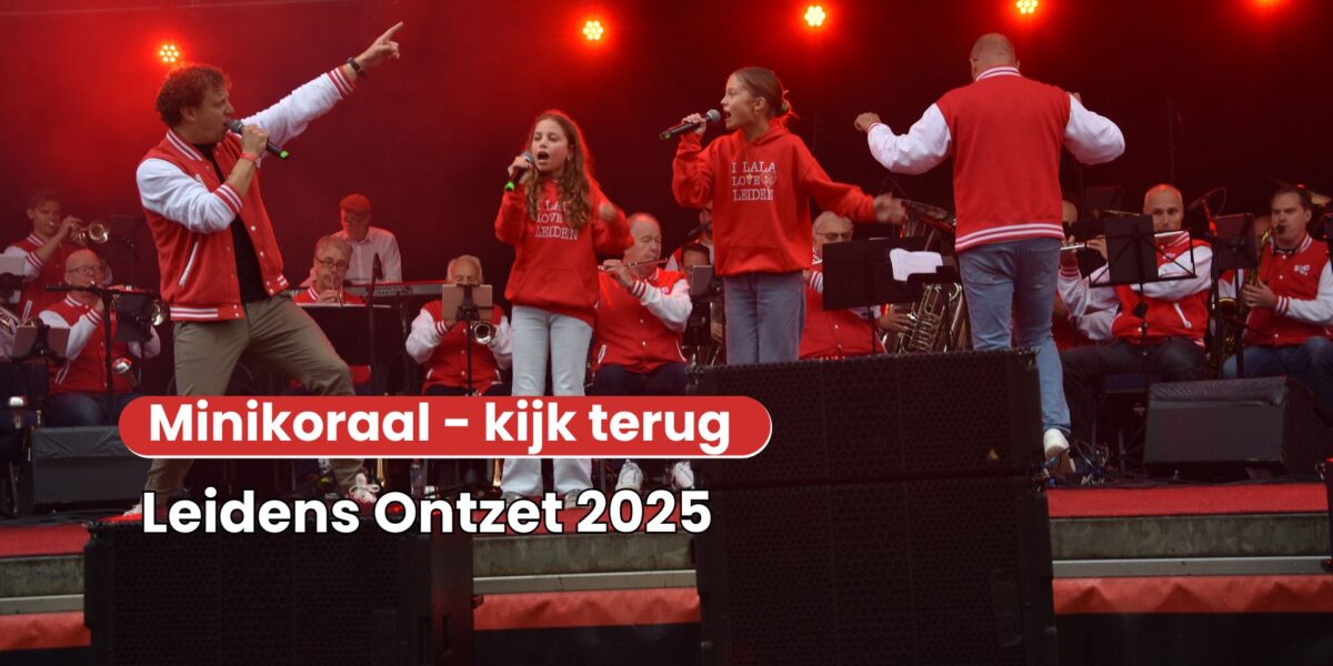 In een prettig herfstzonnetje genoten ruim drieduizend basisscholieren dinsdagmiddag op het Garenmarktplein van het Minikoraal. Het enthousiaste publiek zong uit volle borst de liedjes over de geschiedenis van het Leidens Ontzet mee.