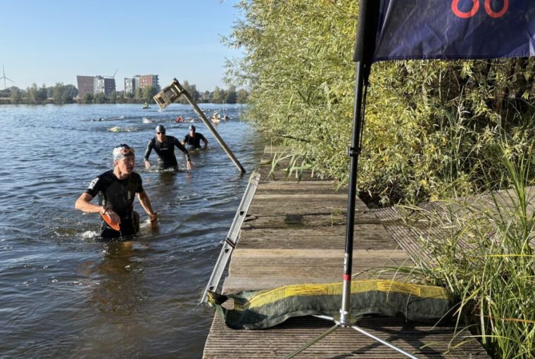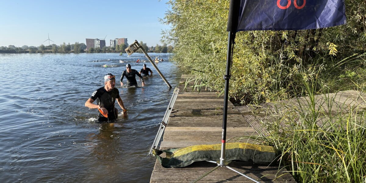 Terwijl de mist nog boven het water van de Vadedoplas en de skeelerbaan hing, maakten de eerste atleten zich zondagochtend bij Vereniging IJssport Leiderdorp klaar voor de jaarlijkse Swimrun Leiderdorp. Zoals altijd met start en finish op de skeelerbaan. Kort daarna brak de zon door en gingen ruim vijftig deelnemers van start voor één of twee rondes door de Munnikenpolder.