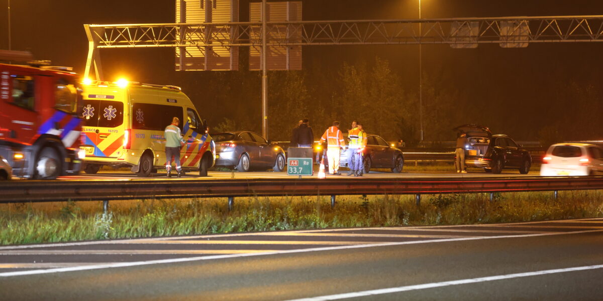 Op de A4 bij Leiden is zondagavond een ongeluk gebeurd waarbij twee of drie voertuigen betrokken waren. Eén rijstrook van de hoofdrijbaan werd tijdelijk afgesloten, zodat hulpdiensten veilig konden werken.