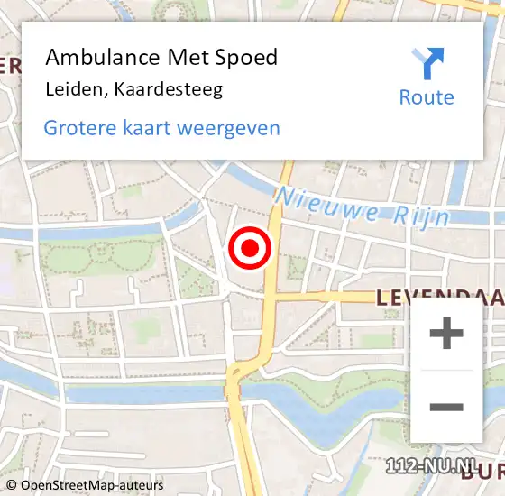 Locatie op kaart van de 112 melding: Ambulance Met Spoed Naar Leiden, Kaardesteeg op 18 oktober 2025 13:06