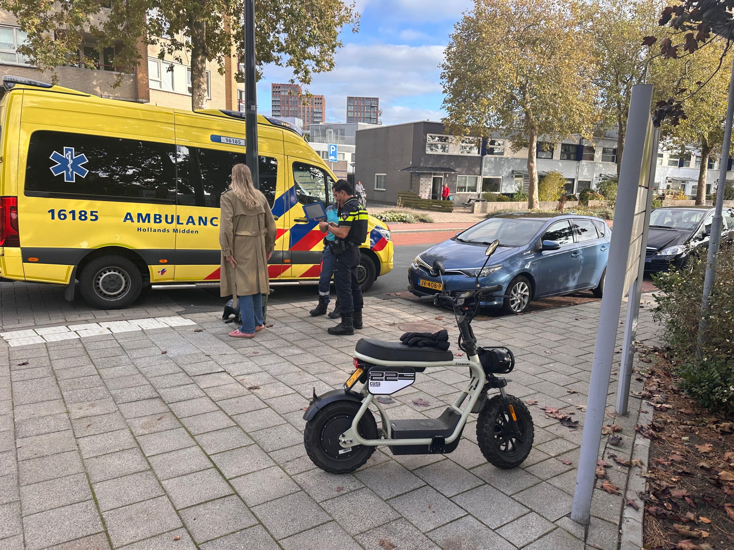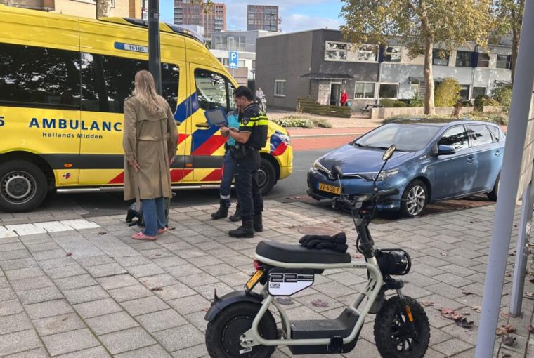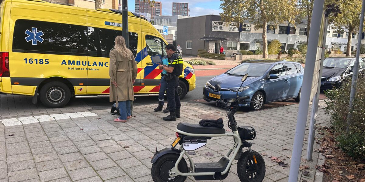 Bij een aanrijding tussen een auto en een bromfiets op de kruising van de Zoeterwoudseweg en de Vrijheidslaan in Leiden is de bestuurder van de bromfiets gewond geraakt.