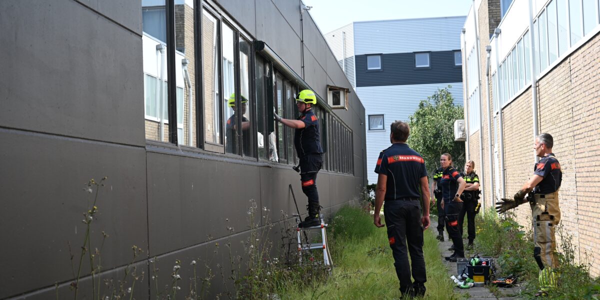 De brandweer werd erbij gehaald, maar kon in eerste instantie niet veel uithalen. Er was niemand van het bedrijf bereikbaar. Toen het water onder de schuifdeur door naar buiten bleef stromen, is een raam geforceerd om binnen te komen. Daardoor ging ook het brandalarm af.