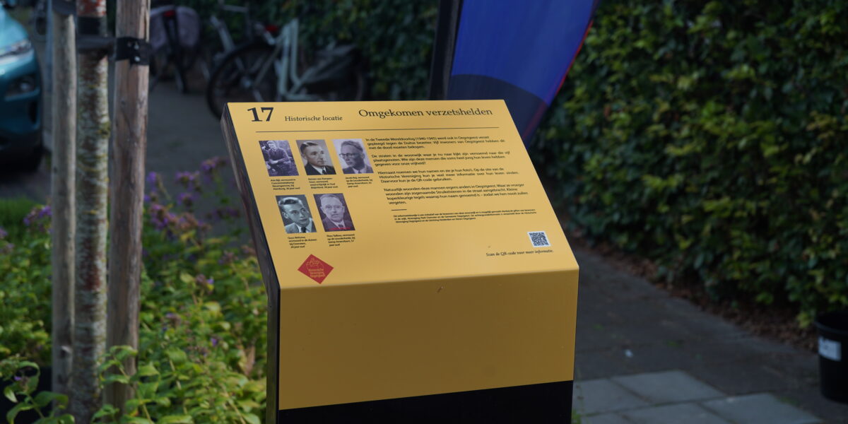 Het is het zeventiende herdenkingsbordje in het dorp. Oorspronkelijk stonden ze alleen bij (verdwenen) erfgoed, maar voor de verzetshelden is een uitzondering gemaakt. De initiatiefnemers moesten de gemeente daar wel toe overtuigen, maar al snel ging het gemeentebestuur overstag.