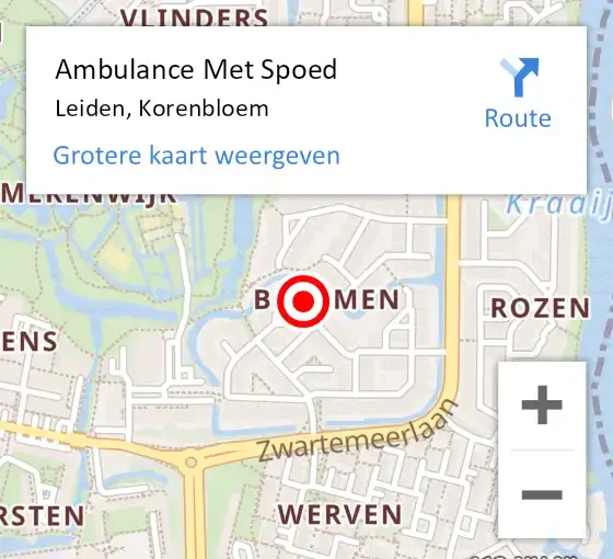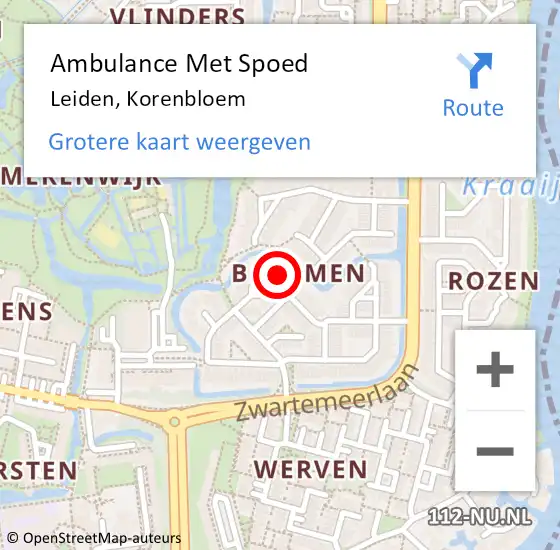 Locatie op kaart van de 112 melding: Ambulance Met Spoed Naar Leiden, Korenbloem op 19 oktober 2025 23:56