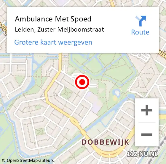 Locatie op kaart van de 112 melding: Ambulance Met Spoed Naar Leiden, Zuster Meijboomstraat op 19 oktober 2025 20:57