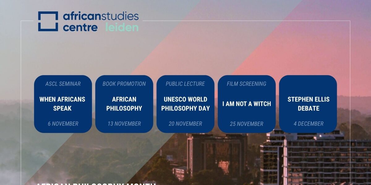 Het Afrika Studie Centrum van de Universiteit Leiden (ASCL) organiseert in november een maand lang activiteiten rond het thema Afrikaanse filosofie. Het ASCL wil met deze maand aandacht schenken aan een belangrijk onderdeel van de diverse culturen van het Afrikaanse continent.