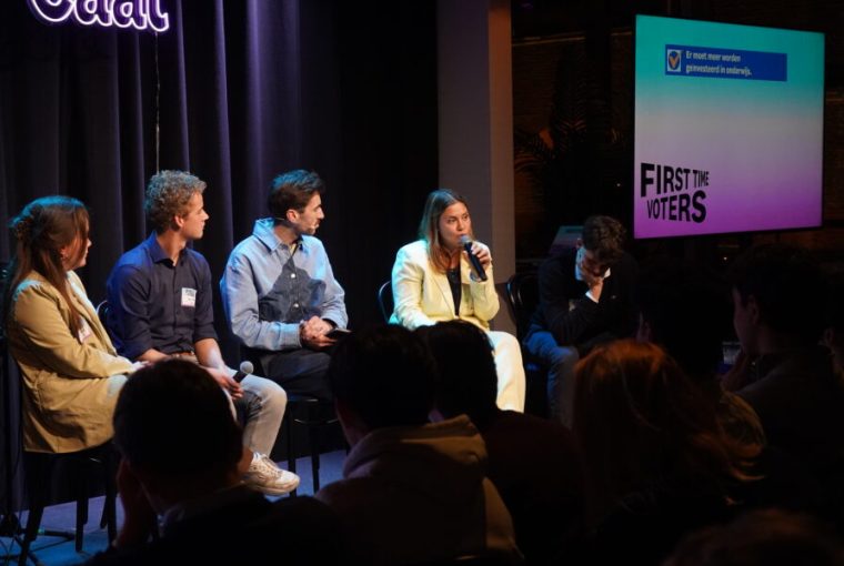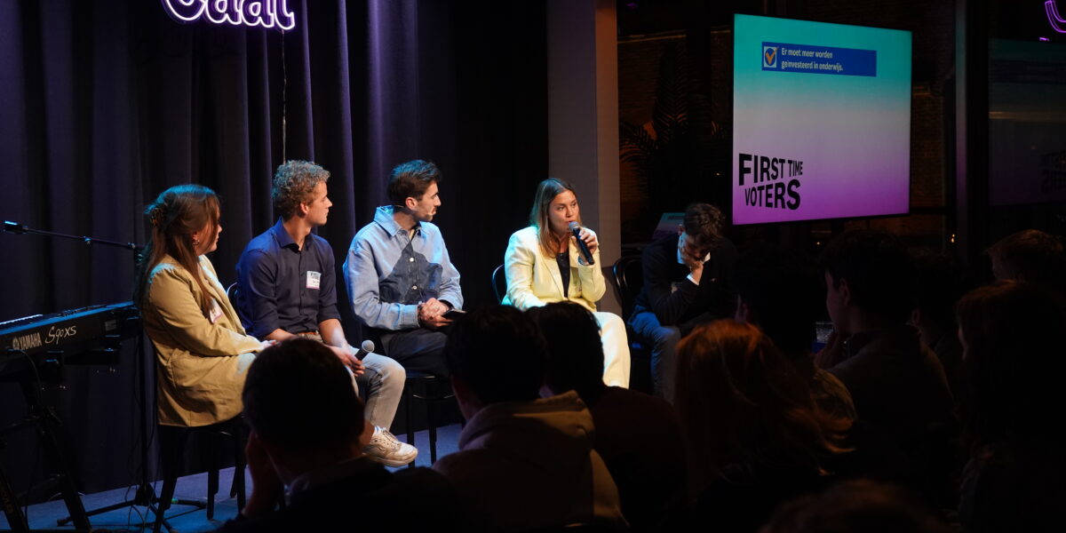 Café Caat van de Stadsgehoorzaal in Leiden zat maandagavond vol jongeren die woensdag voor het eerst mogen stemmen. Ze waren daar voor een debat tussen jongeren van politieke partijen én om meer te leren over de politiek.