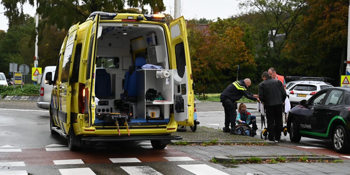 Een brommerrijdster is woensdagochtend op de rotonde bij de Laan van Oud Poelgeest en de Hofdijck in Oegstgeest aangereden door een auto.