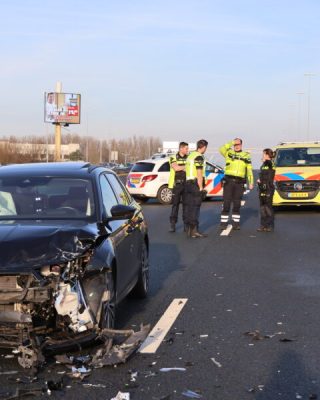 Een bestelbus van PostNL en een personenauto zijn donderdagmorgen rond 8.00 uur zwaar beschadigd geraakt bij een botsing op bedrijventerrein
