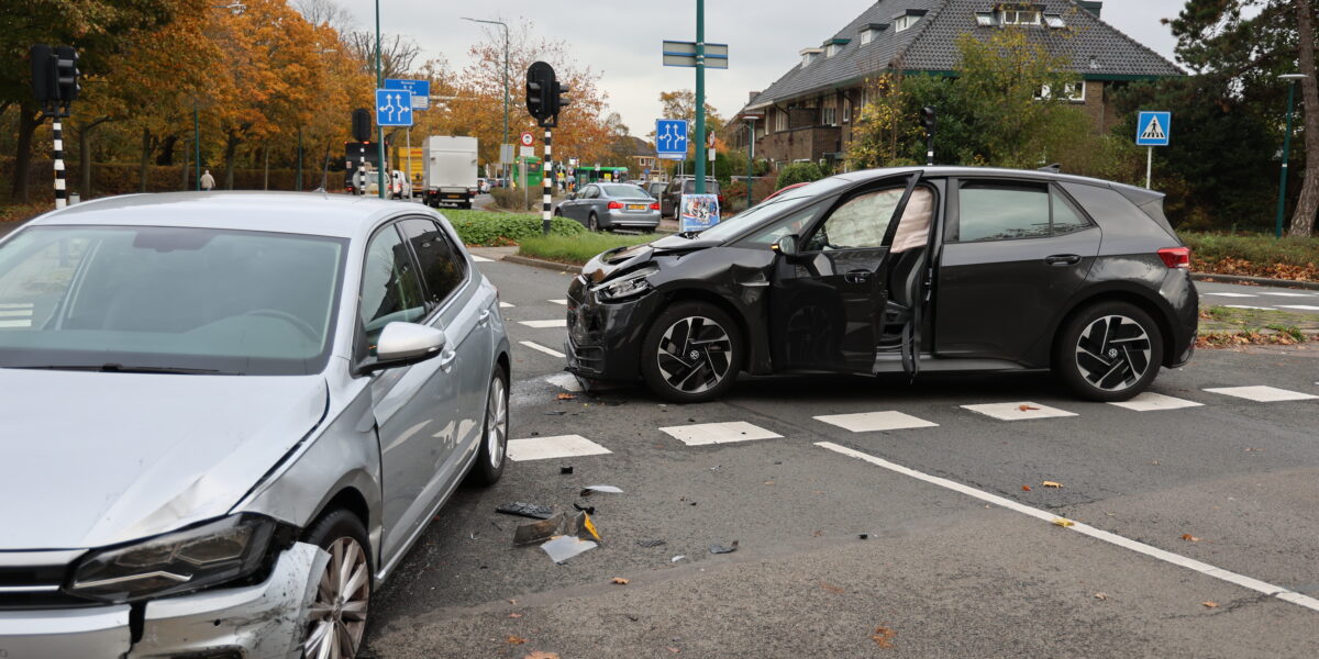 Een aanrijding tussen twee auto’s heeft maandag rond 14.30 uur voor flinke verkeerschaos gezorgd op de kruising van de Rijnzichtweg met de Apollolaan in Oegstgeest. Beide voertuigen raakten zwaar beschadigd.