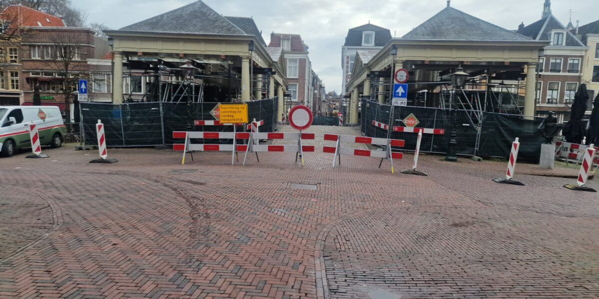 De voorbereidingen voor het onderhoud aan de Koornbeursbrug in Leiden zijn begonnen. De brug is vanaf nu afgesloten voor al het verkeer. De werkzaamheden duren naar schatting tot april volgend jaar.