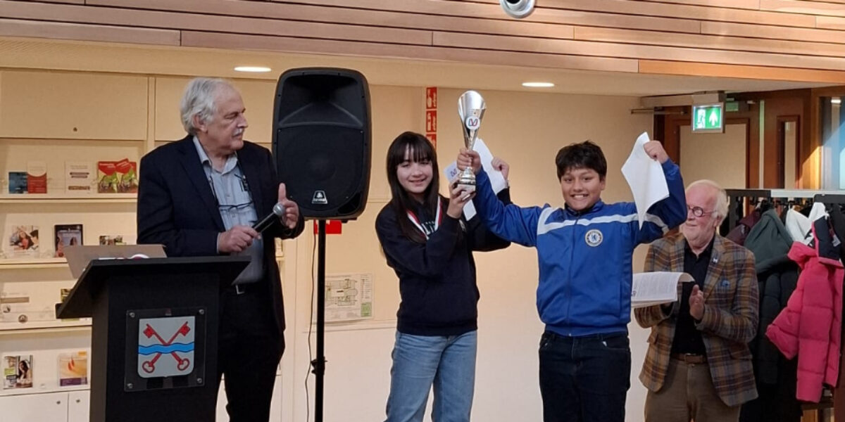 De wisseltrofee werd gewonnen door de Prins Willem Alexander school: de twee deelnemers van deze school maakten samen één fout. De vertegenwoordiger van De Hobbit, winnende school in 2024, overhandigde de beker aan het team van De Schakel. Tot de schoolprijs hoort ook een boek voor de schoolbibliotheek, zoals ieder jaar beschikbaar gesteld door Boekhandel De Kler.