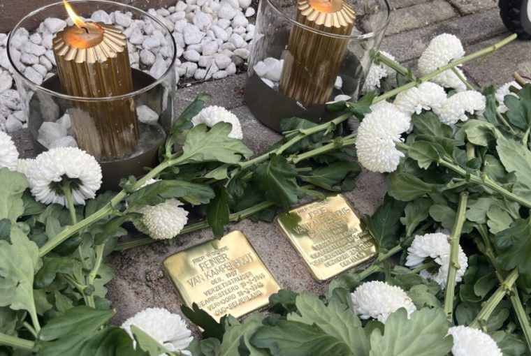 In een stille straat in de Oegstgeester Indische Buurt buigen bewoners zich over twee glanzende stenen in de stoep. De Stolpersteine, of struikelstenen, markeren de voormalige woning van het echtpaar Jobje en Reinier van Kampenhout, dat in de laatste maanden van de Tweede Wereldoorlog werd opgepakt en nooit meer thuiskwam.