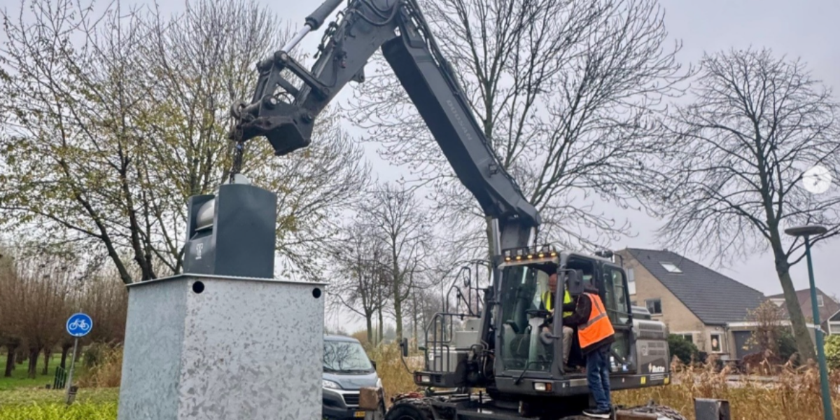 De gemeente Oegstgeest heeft vrijdag de eerste ondergrondse container voor restafval geplaatst bij hoogbouw. Dat gebeurde aan de Willem Dudoklaan in het dorp.