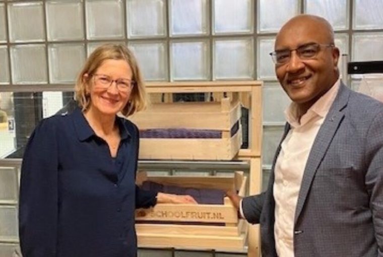Mayke de Groot is coördinator gezonde school. Rechts wethouder Jermoumi. (Foto: PROO)
