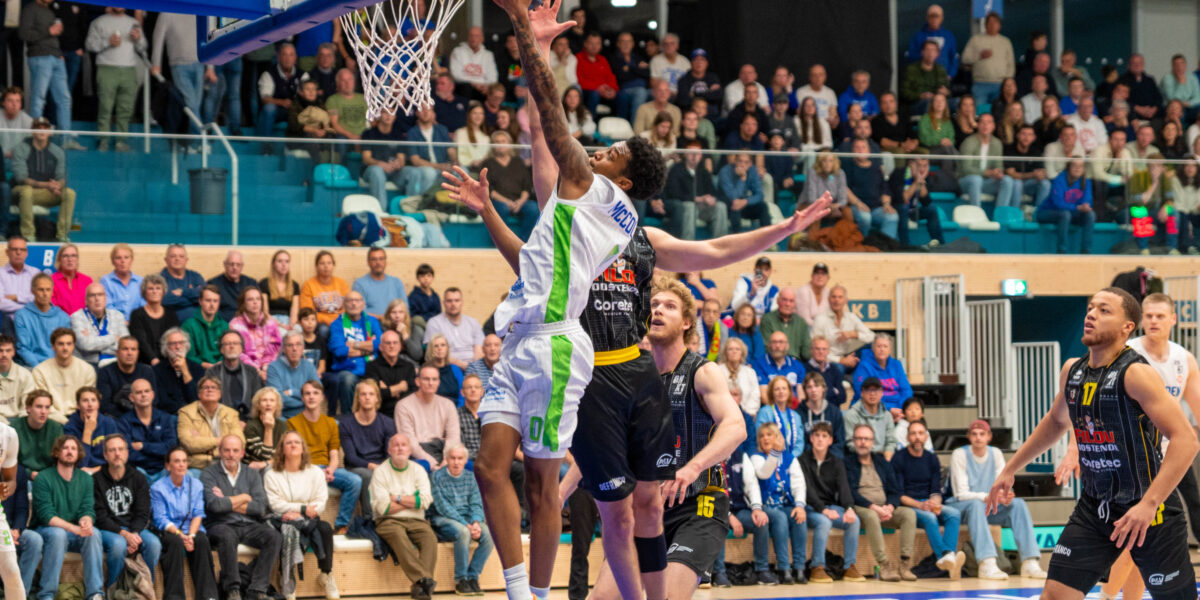 Zorg en Zekerheid Leiden Basketball leek in de eerste helft op een nederlaag tegen Filou Oostende af te stevenen. Halverwege de wedstrijd gaf het scorebord 43-55 aan. In de tweede helft draaide ZZ Leiden de rollen om.