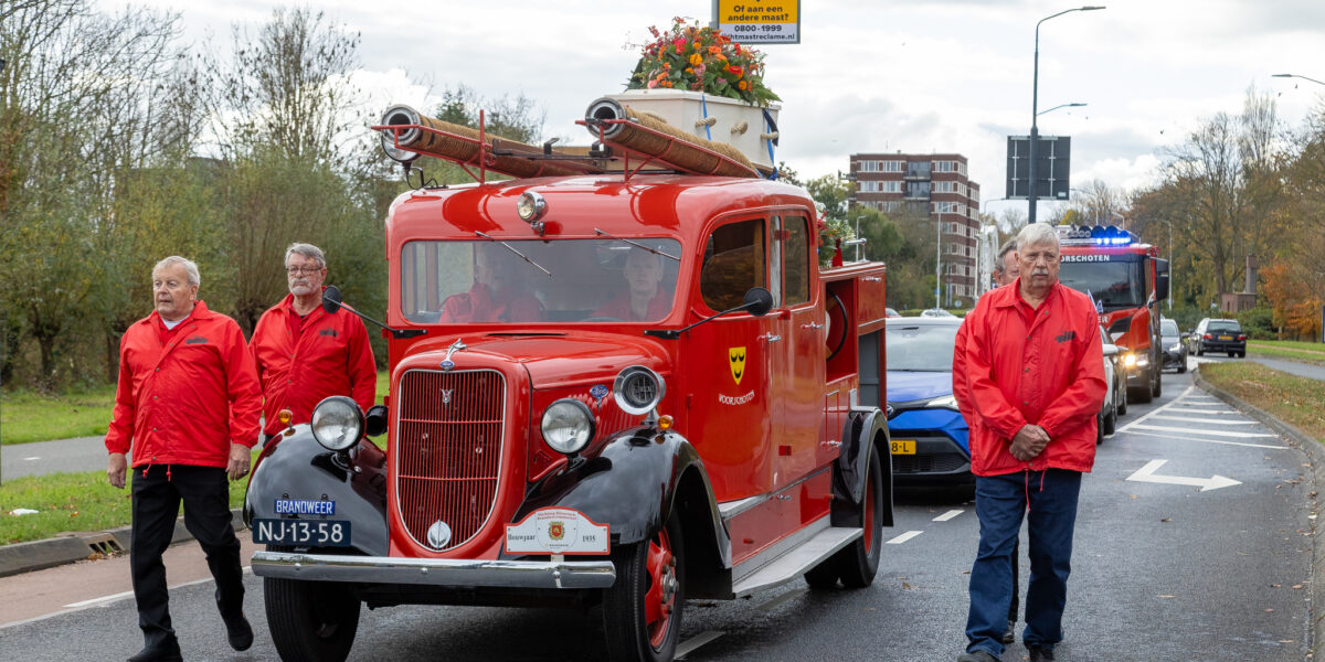Een bijzondere uitvaart dinsdag bij de brandweerkazerne. Martin Oppelaar, brandweerman in hart en nieren, oud vrijwilliger bij de Voorschotense brandweer, voorzitter van de Stichting ‘Spuit 41’ en brandweermuseum Voorschoten, werd naar zijn laatste rustplaats gebracht. Op de oude brandweerauto Spuit 41.