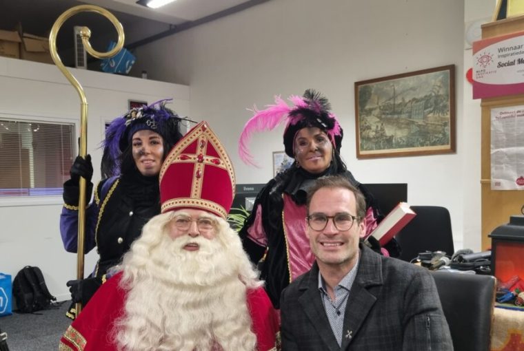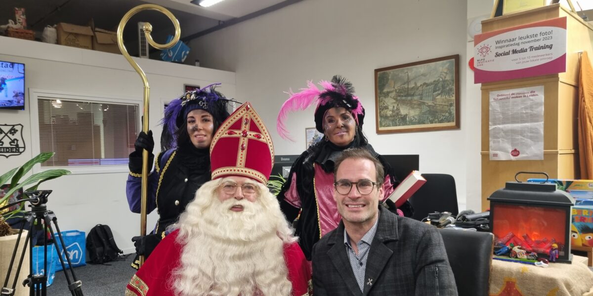 Ook de Leidse burgemeester Peter Heijkoop bracht een bezoek aan de Sleutelstad-studio. Hij was onder de indruk van alle cadeaus die deze week zijn langsgebracht. “Ik wens iedereen een hele mooie pakjesavond”, aldus de burgemeester.