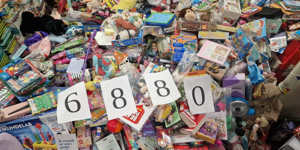 17.40 uur DE FINALE UITSLAG 6.880 gedoneerde cadeaus Daarmee is de stoute verwachting van de Sleutelstad actie voor Sintvoorieder1 waarheid geworden. Wij bedanken alle mensen die de afgelopen dagen cadeaus hebben gebracht. De actie bij Sleutelstad gaat officieus nog even door. De studio is vrijdagavond op tot 23.00 uur. Ook zaterdag is de studio open van 9.00 tot 12.00 uur en van 17.00 tot 19.00 uur. Daarna zijn we er weer op maandag vanaf 9.30 uur.