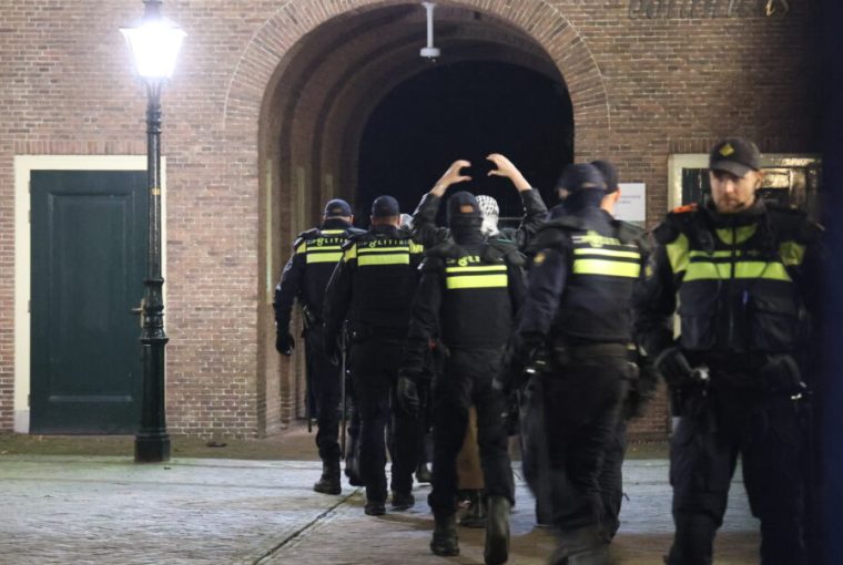 De Mobiele Eenheid heeft woensdag rond 20.00 uur ingegrepen bij de bezetting van het Academiegebouw in Leiden. Daar hielden zich vanaf 13.00 uur pro-Palestina demonstranten op.