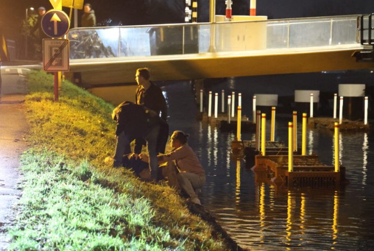 Omstanders hebben haar weer op de kant geholpen en verleenden eerste hulp tot de politie en de ambulancedienst aankwamen.