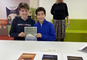(Foto: Sophie Vink) De scholieren Hai-Jun Esman en Joey Straver van het Vlietland College werkten aan een schoolproject voor bakkerij