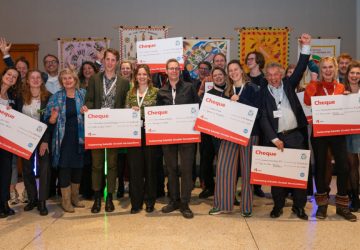Feestelijke uitreiking van subsidiecheques samen met wethouder Yvonne van Delft. (Foto: Eelke Fotografie) Leiden wil zoveel mogelijk spullen en materialen
