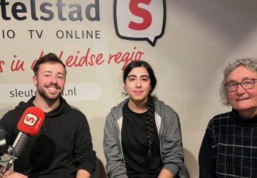 Lorenzo Bloemraad en Shahad Alghiwi, studenten van mboRijnland, en Ine Wiersma van Amnesty International Leiden-Leiderdorp. (Foto: Gerry van Bakel) Een