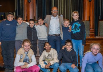 Wethouder Abdelhaq Jermoumi spreekt de kinderen van de kinderraad toe (Foto’s: Buro JP) Leiden, 1 november 2025 om 14:45 uur