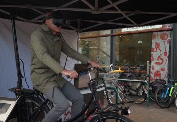 De gemeente Oegstgeest stond dinsdag bij winkelcentrum Lange Voort voor een bewustwordingscampagne voor fietsveiligheid. Daarvoor werd een VR-afleidingsfiets ingezet en