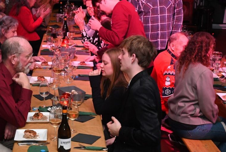 Studenten en mensen van de voedselbank tijdens het diner (Foto’s: Emile van Aelst)