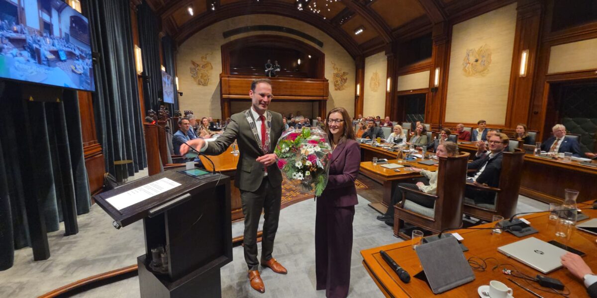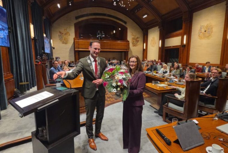 Prescillia van Noort is donderdagavond beëdigd als wethouder namens GroenLinks Leiden. Ze volgt Yvonne van Delft op die dinsdag afscheid nam van de Leidse politiek.