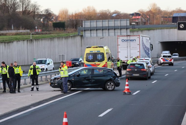 Een bergingsbedrijf heeft de beschadigde personenauto geborgen. De schade aan de vrachtwagen lijkt beperkt.