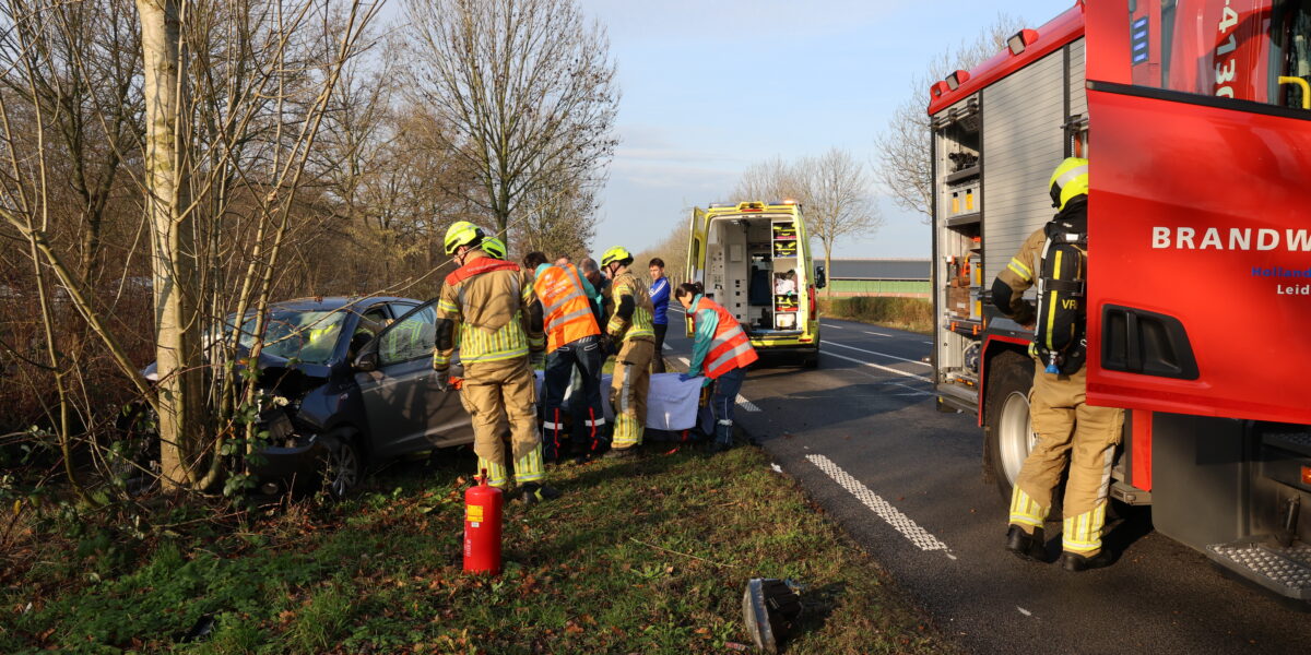 Een automobilist is zondagmiddag gewond geraakt bij een eenzijdig ongeval op de N446 bij Leiderdorp. De bestuurder raakte om onbekende redenen van de weg en botste met hoge snelheid frontaal tegen een boom langs de Provincialeweg.