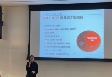 Hoogleraar Marieke Liem gaf een lezing over femicide bij de afsluiting van de campagne ‘Orange the World’. (Foto: Gerry van