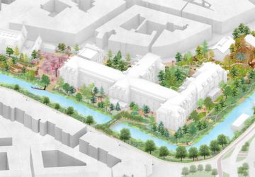 Impressie van de nieuwe buitenruimte. (Beeld: LOLA Landscape Architects) De buitenruimte van het Wereldmuseum in Leiden gaat op de schop.