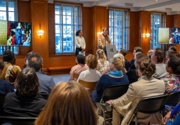 Onderzoeker Ligia Giay geeft uitleg bij haar onderzoek naar rol Universiteit Leiden in koloniaal en slavernijverleden. (Foto: Monique Shaw) Leiden,