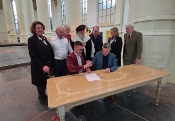 (Foto’s/video: Chris de Waard) De Stichting Stadsparkeerplan Leiden (SSL) ondertekende donderdag de overeenkomst voor de restauratie van de grafzerk van