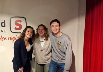 Annelies Meurs, Laura Zuurmond en Jan Venhuizen vertellen over de kerstmarkt van Njord. (Foto: Jan Frensen) Bij studentenvereniging Njord kan