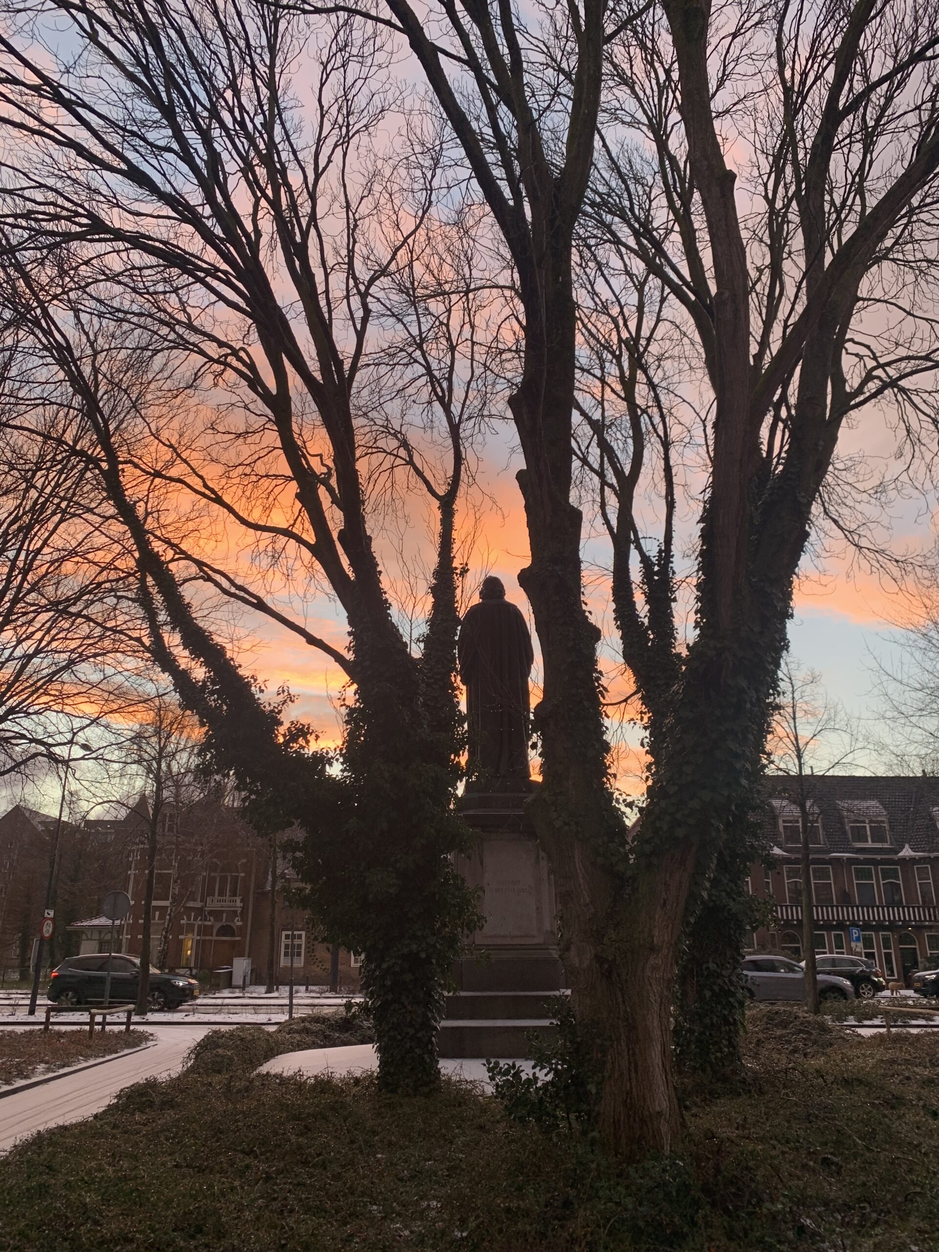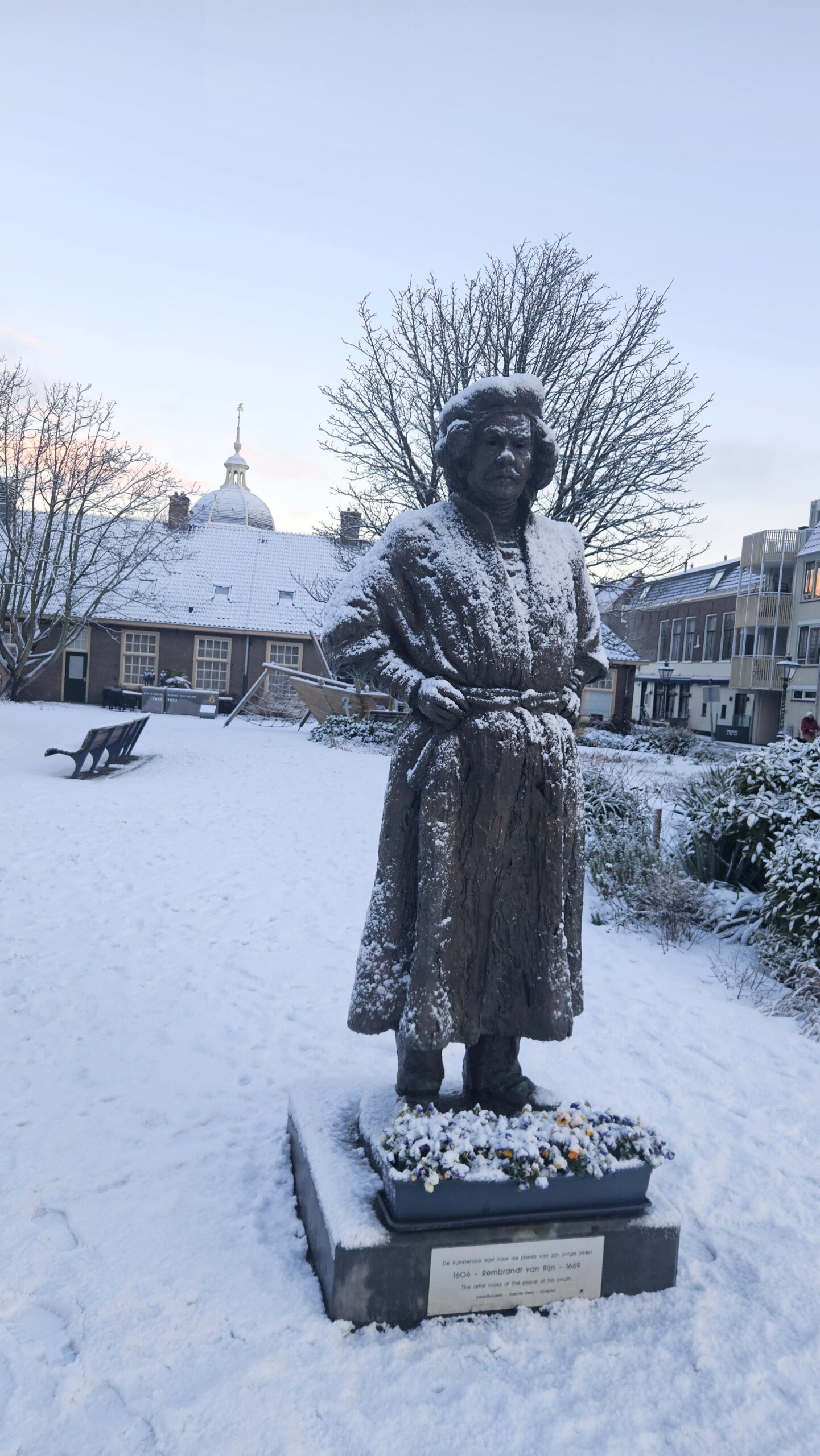 Rembrandt van Rijn overdenkt in Park de Put welke Ral-code hoort bij kleur van sneeuw. (Foto: Arie in ’t Veld)