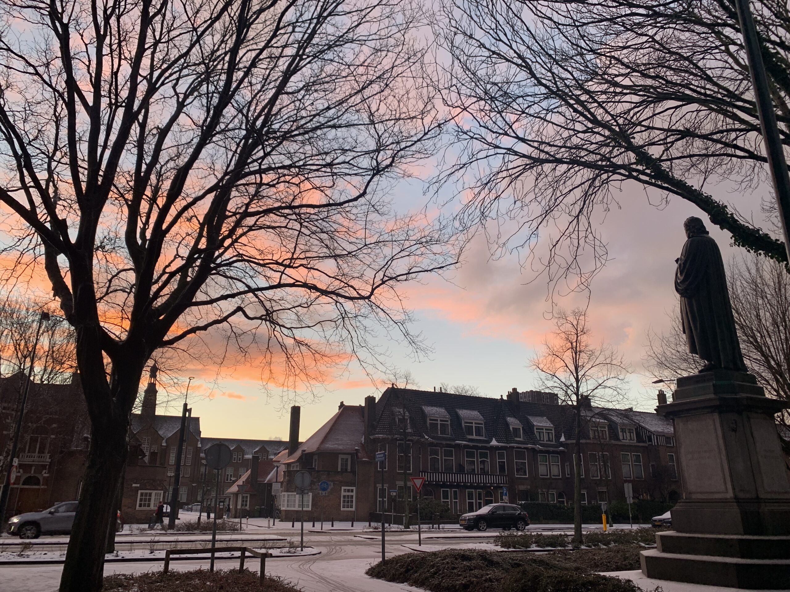 “Geen hele beste foto maar wel mijn mooie uitzicht vanuit mijn kamer op het Jan Michielshofje”, schrijft Tristan.