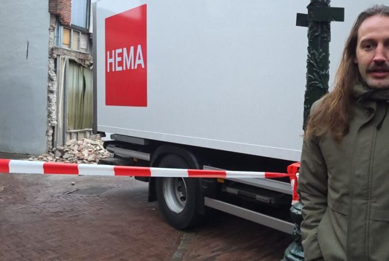 Toen Van Beelen even later de slaap uit zijn ogen had gewreven, zag hij tot zijn ontsteltenis wat er werkelijk was gebeurd. Een vrachtwagen die de HEMA kwam bevoorraden, reed zich klem door verkeerde navigatie-informatie. Om uit de doodlopende straat te komen, moest de chauffeur een paar keer steken en daarbij ging het mis. Met een punt van de achterkant van de laadruimte reed hij tegen een uitstekende rand op de hoek van het pand en nam daarbij de halve gevel mee, inclusief raamkozijn.