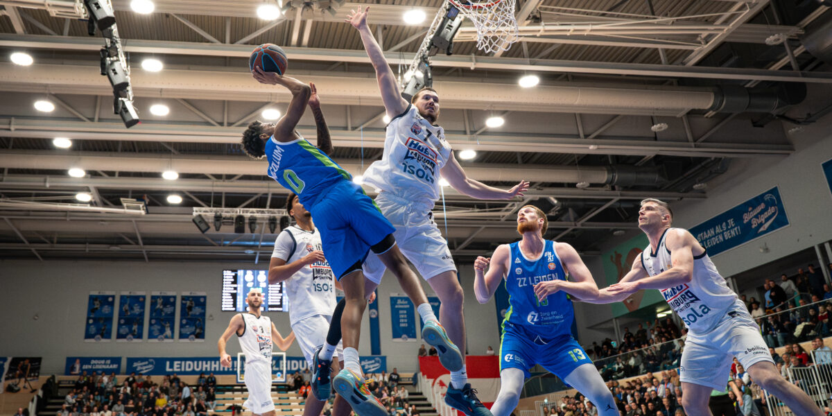 Zorg en Zekerheid Leiden Basbetball heeft zaterdagavond de derde nederlaag op rij geleden. Tegen Hubo Limburg United was de Leidse ploeg lange tijd de betere, al werd een voorsprong van 20 punten nog voor de rust beperkt tot 13 punten: 43-30.