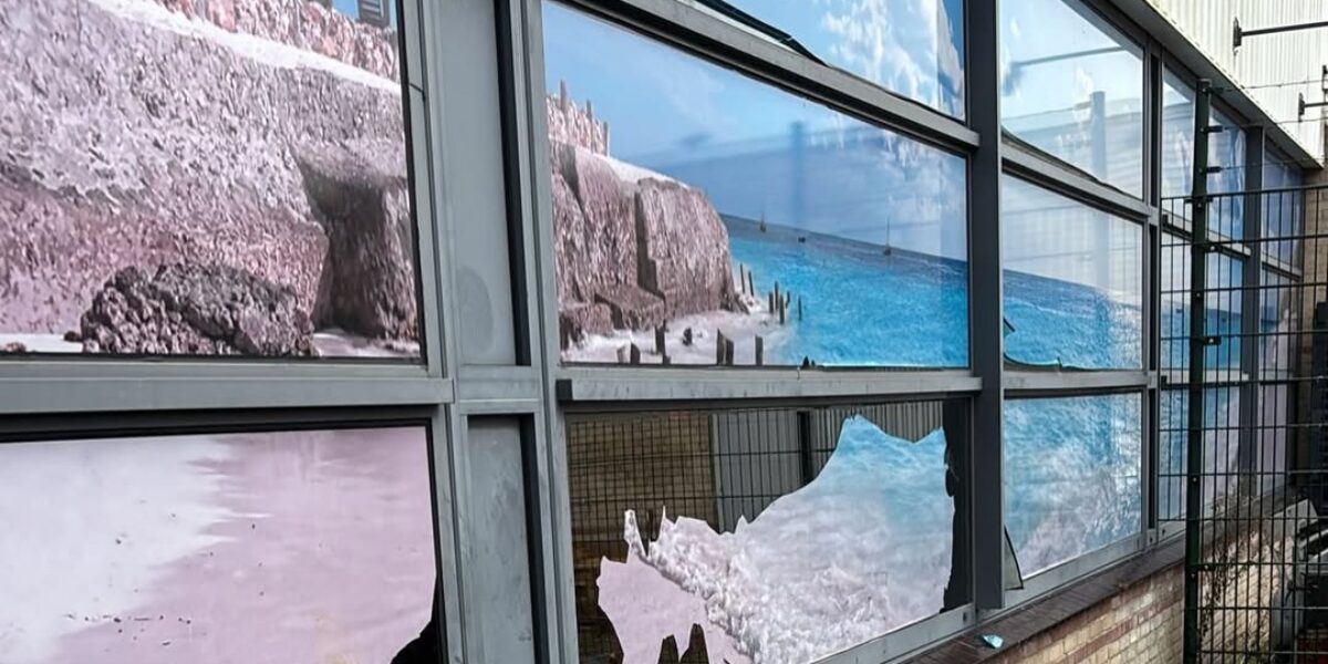 Vernielingen bij Sport- en Recreatiecentrum de Does. (Foto: Sport- en Recreatiecentrum de Does)