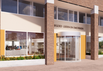Toekomstige voorgevel van Erfgoed Leiden en Omstreken met entree. (Afbeelding: Studio Groen + Schild) De renovatie en verduurzaming van het