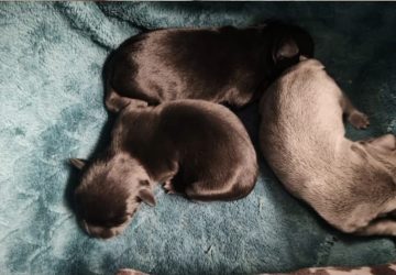 De gevonden pups. (Foto: Politie Leiden Noord) Een aantal pasgeboren puppy’s is zondag gedumpt bij een brug ter hoogte van
