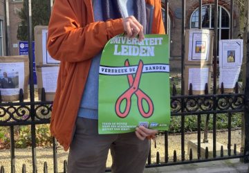 (Foto: Daan Vergouwe) Activisten van Leiden Scholars for Palestine spraken donderdag met het nieuwe college van bestuur van de Universiteit
